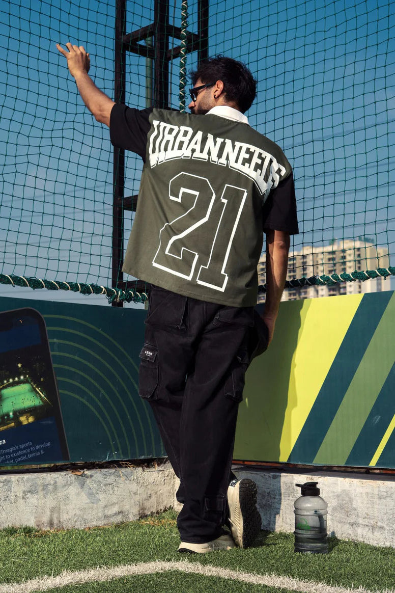 whether you're running drills, dropping dimes, or just catching rays—this tee moves with you. oversized fit, collared edge, game-day sharp. throw it on once, you’ll forget to take it off.